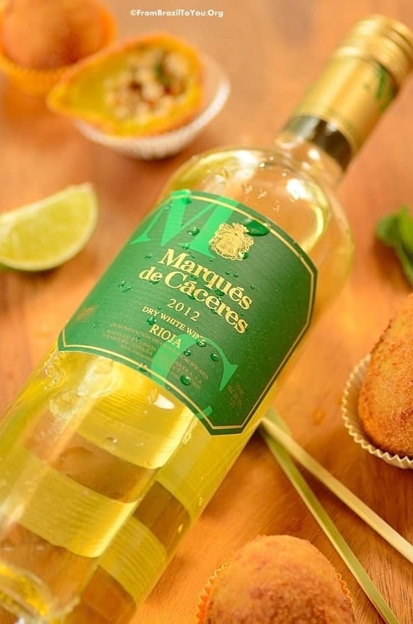2012 Marqués de Cáceres is a dry, crisp, clean, and citrusy white wine from Rioha Alta, Spain. It goes well with our Brazilian tapas for at least 3 reasons: